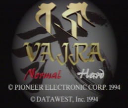 Data West | Rather different from the original Vajra, this one is a more traditional rails shooter with smaller enemies followed by stage bosses, more like Pyramid Patrol. This game is probably the best use of CGI video on the platform, with smooth video sequences featuring bump mapping and complex lighting, which would have been extremely impressive for the time. Note that this is an initial release. Analog video quality improvements will come later, as more copies are ripped and stacked together to correct errors. |